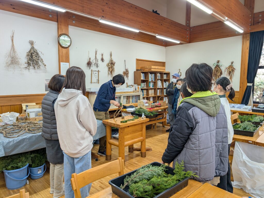 県民の森の素材を使って、クリスマスリース作りを体験していただきました。