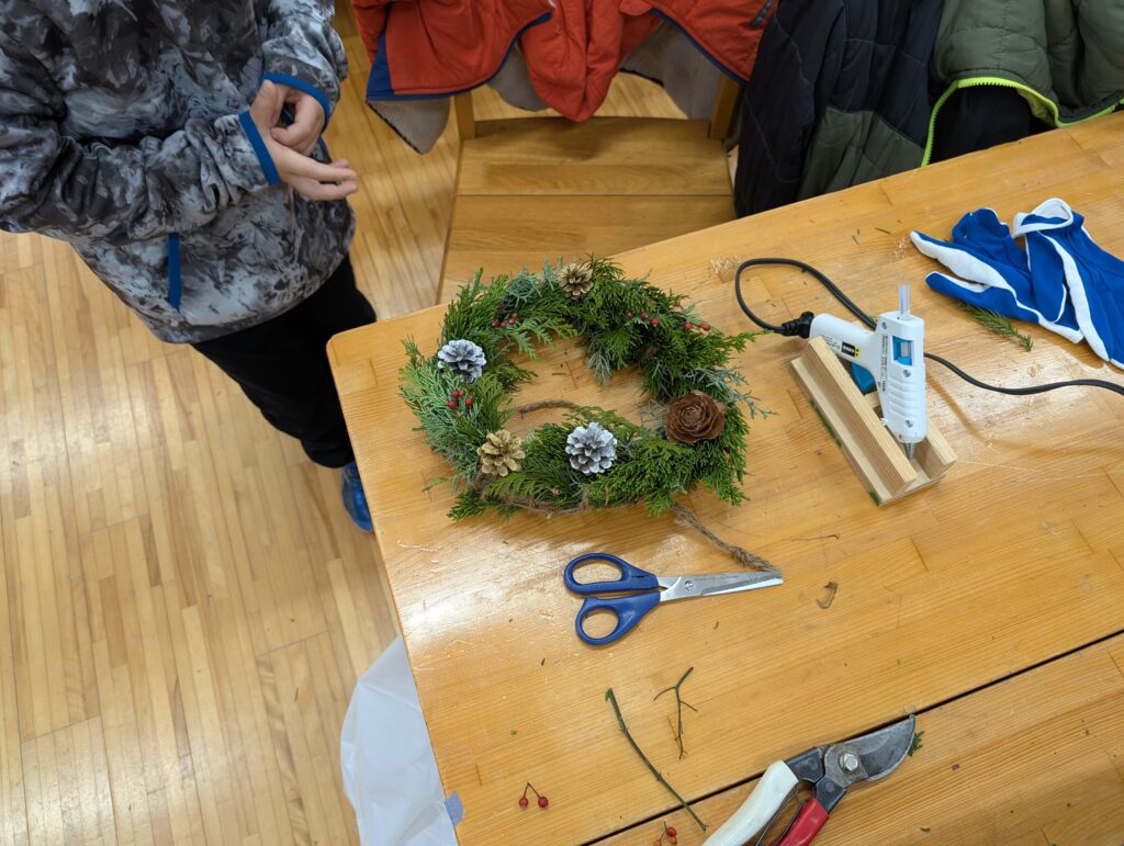 森の素材を使ってクリスマスリース作りを行います。